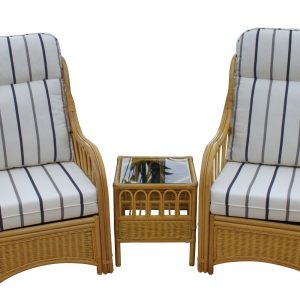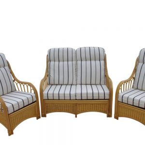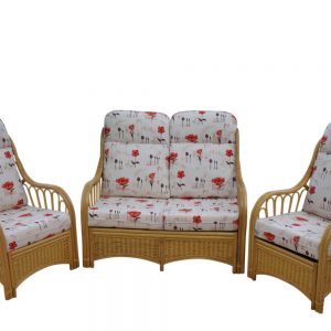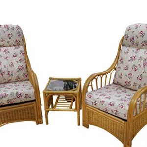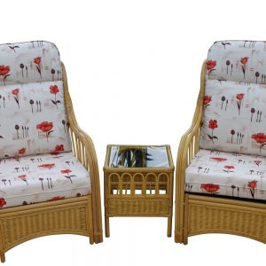 We have an excellent range of cane conservatory furniture. Available either as 3 piece suites or for those with a smaller space, as a duo set with just 2 chairs and a small table. We are presently using 4 material patterns which have proved to be very popular and fit in with most decor.