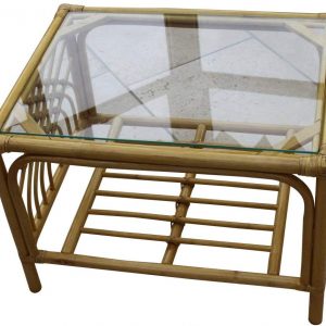 Portofino Cane Coffee Table in a Natural Finish -Tempered Glass