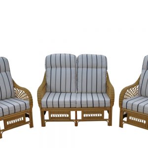 Portofino Cane Furniture 2 Chairs & Sofa – Striped Fabric