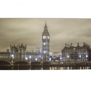 Large Big Ben Canvas Picture Print With 15 LED Lights – Black & White
