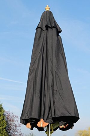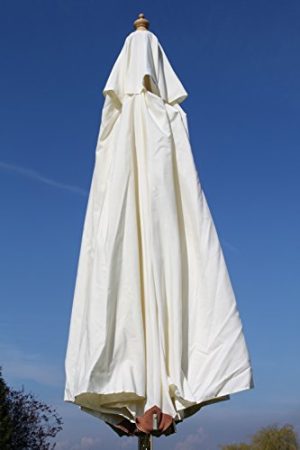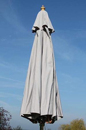 Water-repellent treatment is intended to help with light rain; the canopy is not a substitute for a fully waterproof shelter. For best performance and to help prevent damage, close and secure the parasol in windy conditions and do not leave it open unattended. Colours may vary slightly due to lighting and screen settings.