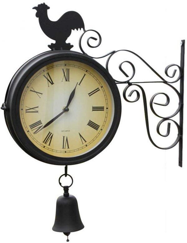 • Attractive double sided garden clock with bell under and a cockerel design on top