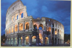 One canvas print featuring a Roman Coliseum scene, stretched over a wooden frame, with 6 integrated LED lights and an on/off switch. Requires 2 x AA batteries (not supplied).