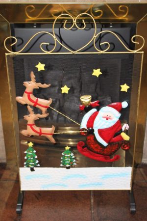One Santa and reindeer metal fire guard (steel frame) with two screw-on metal feet.