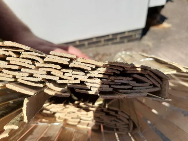 Comprises of vertical split bamboo canes of slightly varying thickness, held in position with horizontal galvanised wires