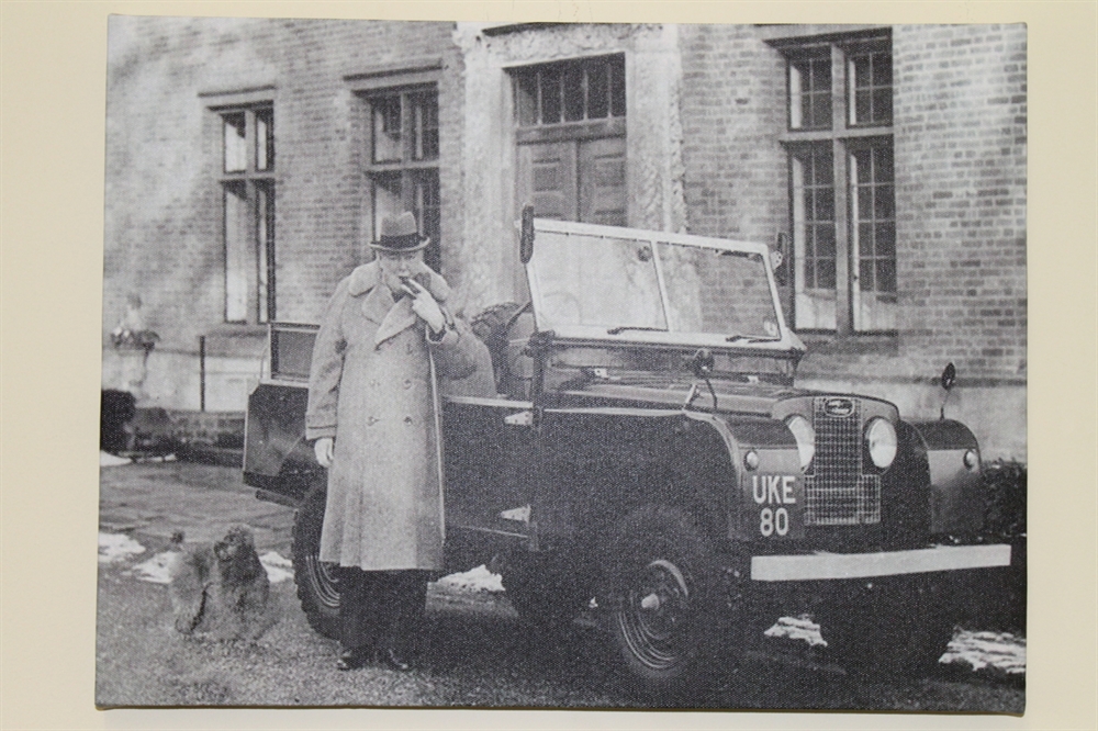 - Winston Churchill with his series 1 Land Rover- circa 1954 – black and white